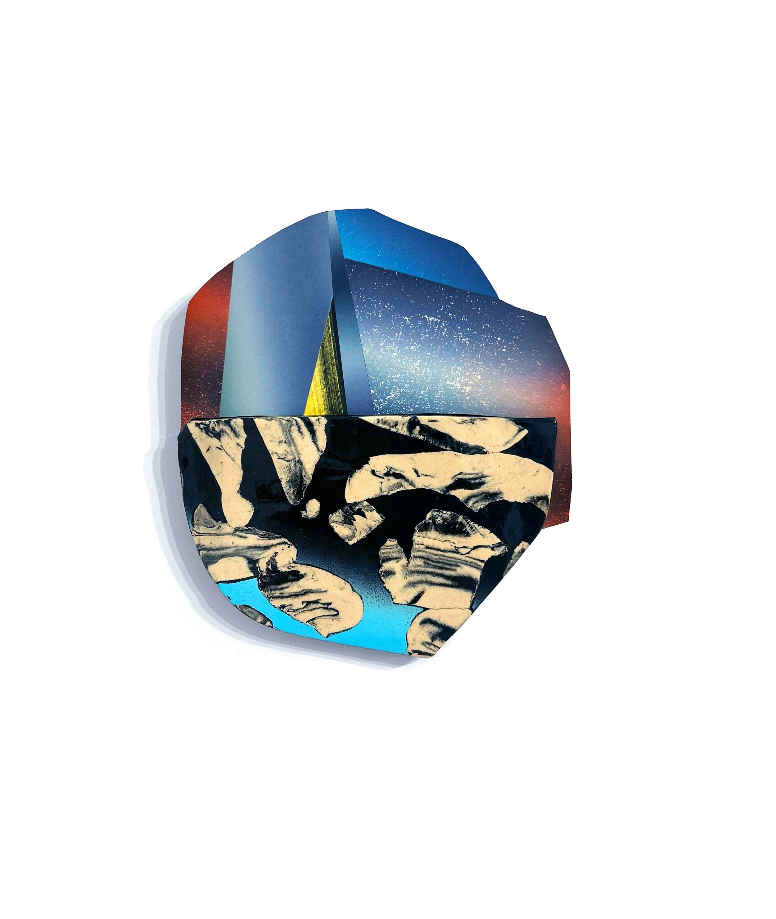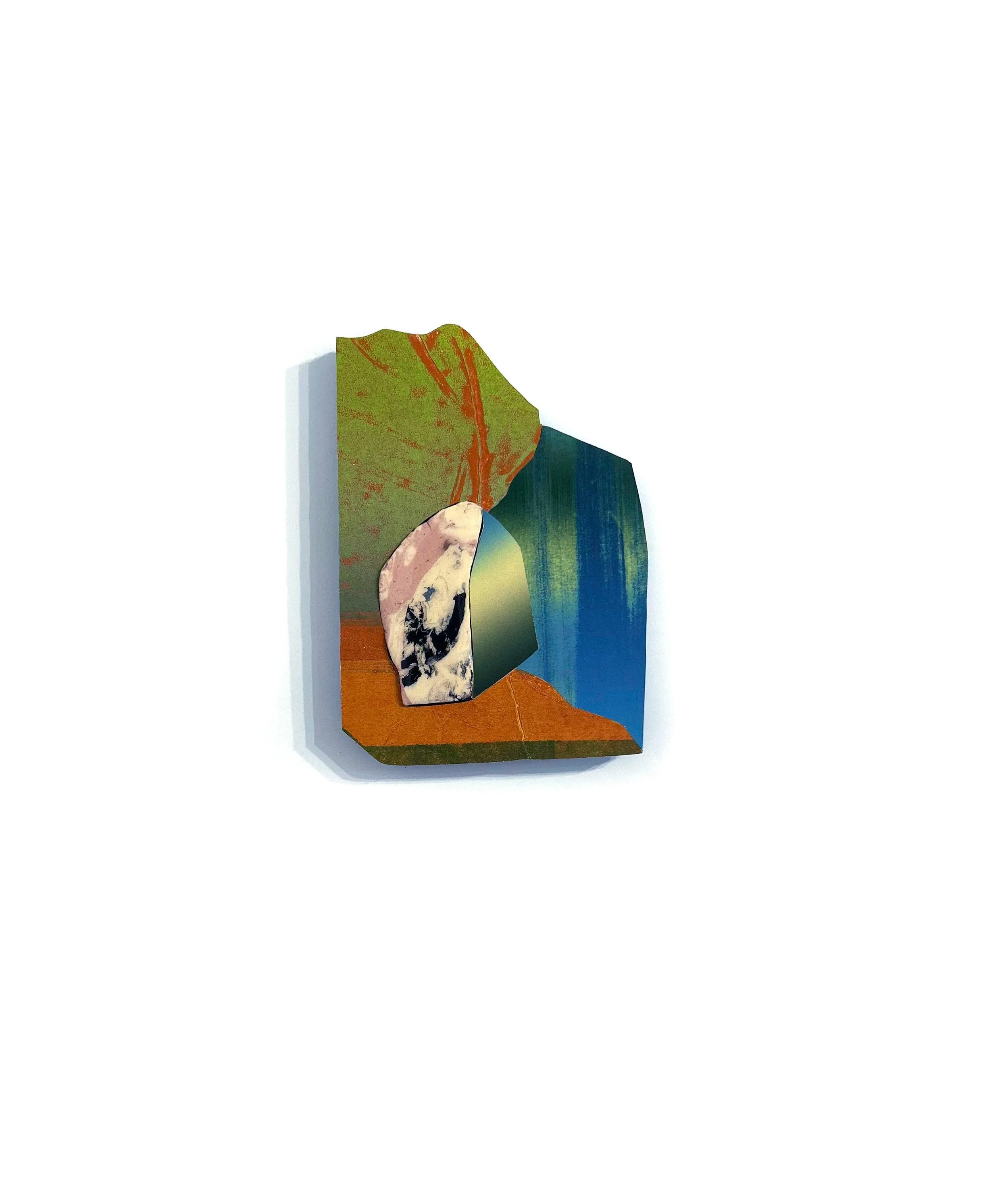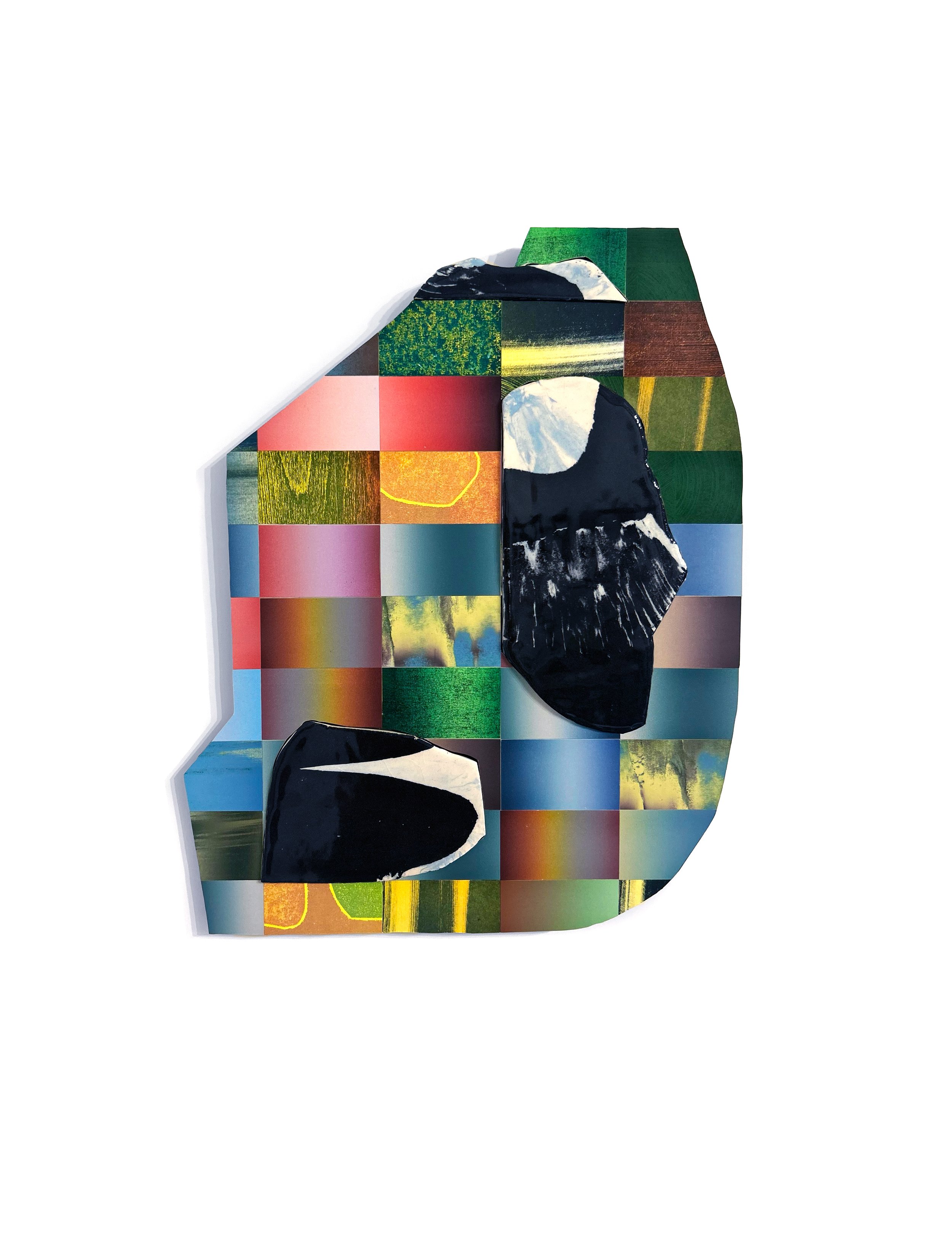 COllage was a group exhibition at the Arvada Center for the Arts in the fall of 2025. The show featured the work of 15 Colorado-based collage artists working in a variety of styles and mediums. I created 16 new pieces for the show and displayed them in a horizontal line. This arrangement evoked an asteroid belt or the rings of Saturn, and this celestial association inspired the series name, Periphery.